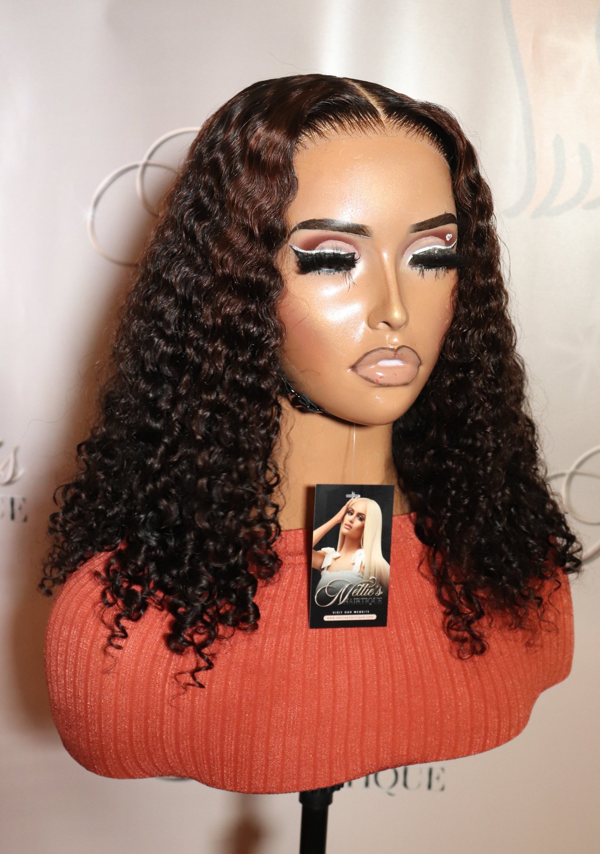 Custom made by Nettie using hair from our Luxury collection. 14" Deep Curly bundles/5x5 Closure.
