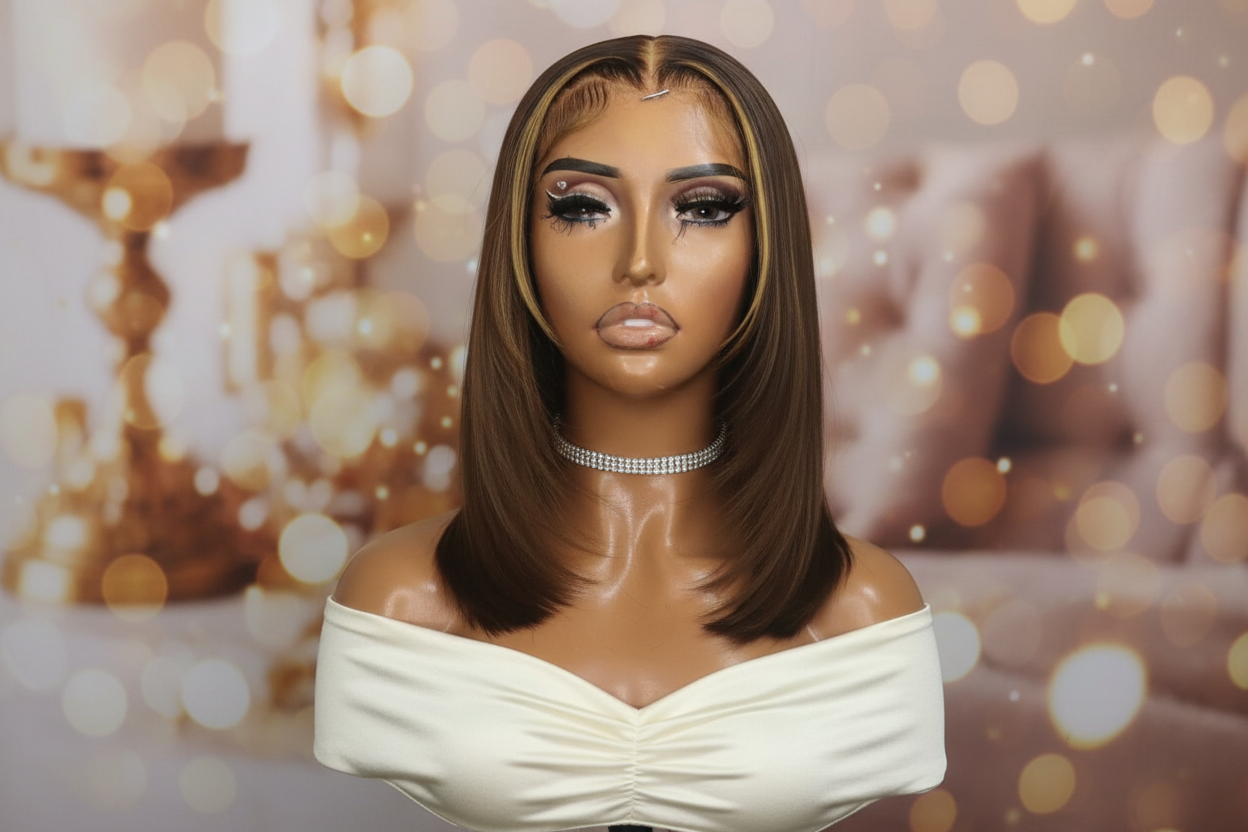 A sleek bob featuring a warm honey contour designed to softly frame the face. Crafted with a natural 5x5 HD closure and refined hairline detailing for a seamless, install-ready finish.